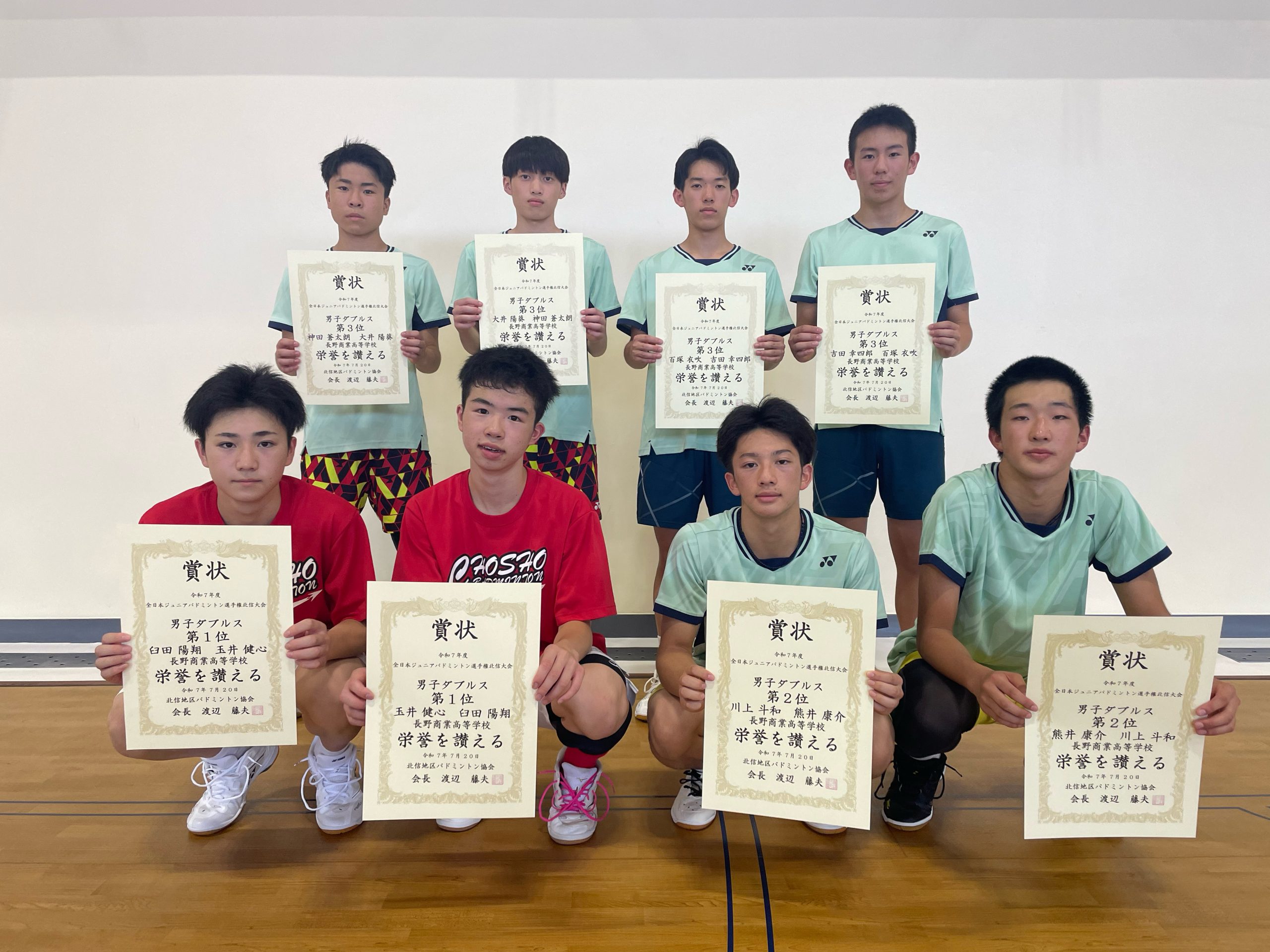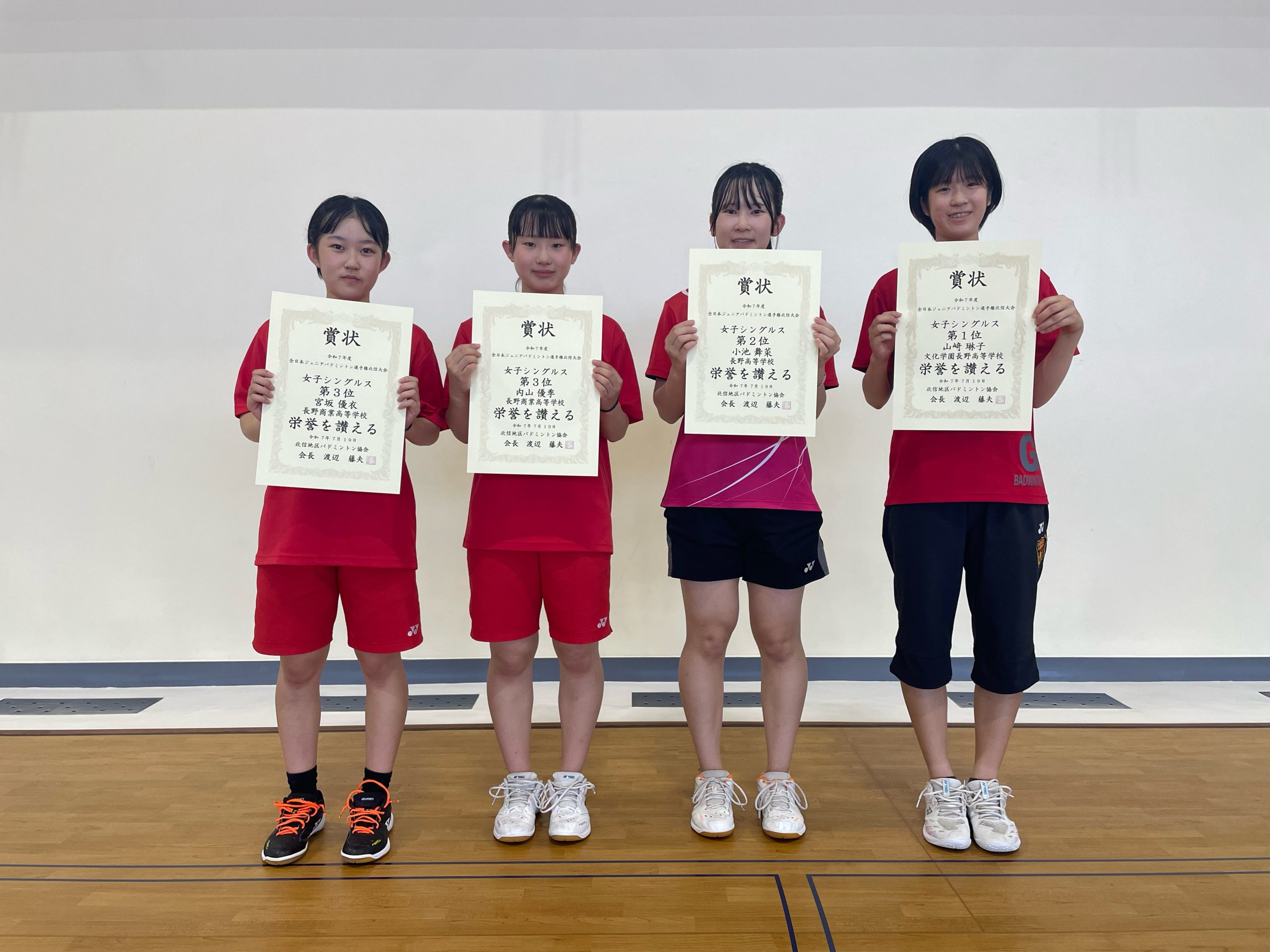 全日本ジュニアバドミントン選手権大会北信地区予選会入賞者