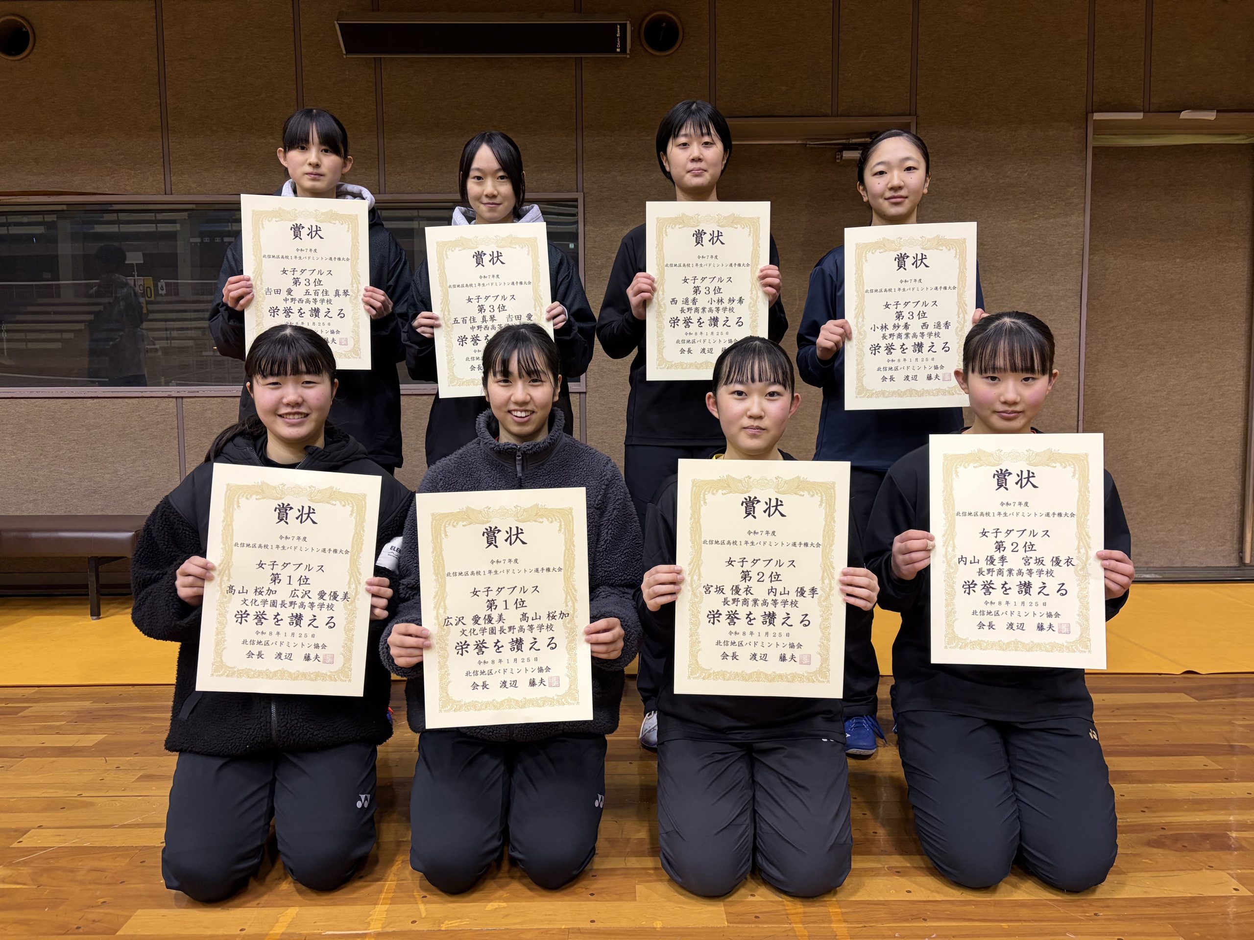 北信地区高校1年生バドミントン選手権大会ダブルスの部入賞者